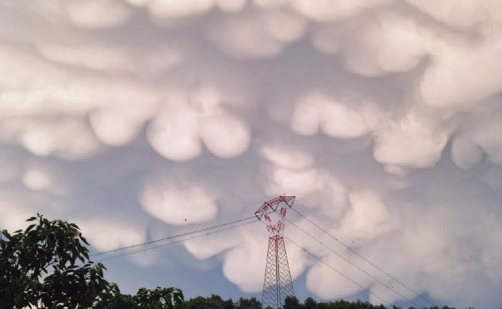 Las nubes mammatus se forman cuando el aire frío desciende y se une al aire cálido ascendente, marcando el límite entre un aire fresco y estable y otro más inestable y cálido. Verlas es sinónimo de encontrarse cerca de una fuerte tormenta.