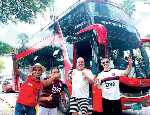 de hinchas del Flamengo y del At lético Paranaense se tomaron zonas turísticas guayaquileñas, con cánticos y baile buscaron demostrar el poder de cada hin chada.