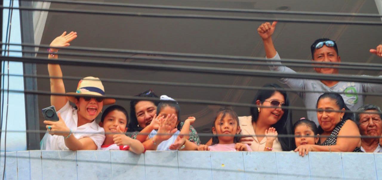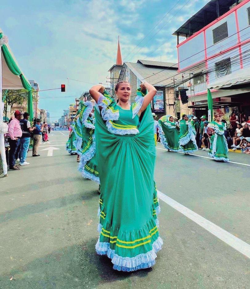 des de la ciudad, miles de ciudadanos coparon la Calle 7 de Octubre, pues querían ser testigos del inicio de las fiestas de la ciudad. Más de 40 delegaciones mostraron su colorido y alegría con sus danzas frente a los espectadores y a la tribuna ubicada en los bajos de BanEcuador.