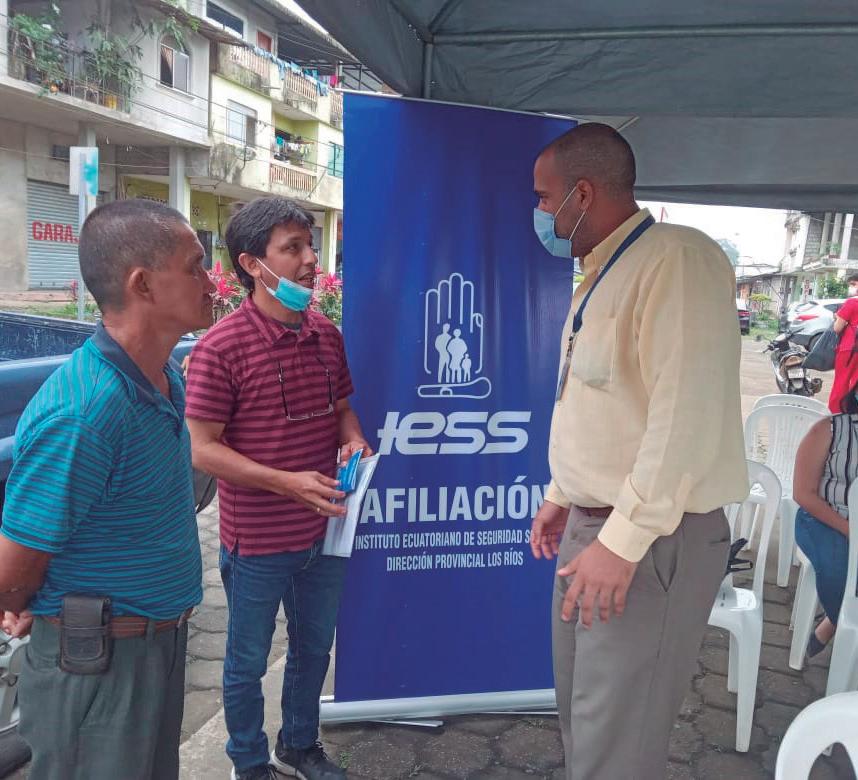 BABAHOYO • El área de Afilia ción y Control Técnico del Instituto Ecuatoriano de Seguridad Social, realizó una jornada itinerante para dar a conocer las prestaciones y servicios de la seguridad social en el cantón Puebloviejo. Pedro Ma rún, promotor de la campaña de nominada ‘Afíliate Ya’, dijo que la carpa del IESS estuvo en el parque junto a la comisaría de esa locali dad, donde se entregaron folletos
