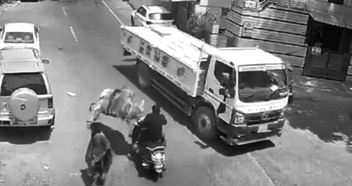 En esta historia la protagonista es una vaca que iba con su dueña por una concurrida calle cerca de Mahalakshmi Layout, en Bengaluru, India. Todo parecía normal cuando en la escena aparece un mo-