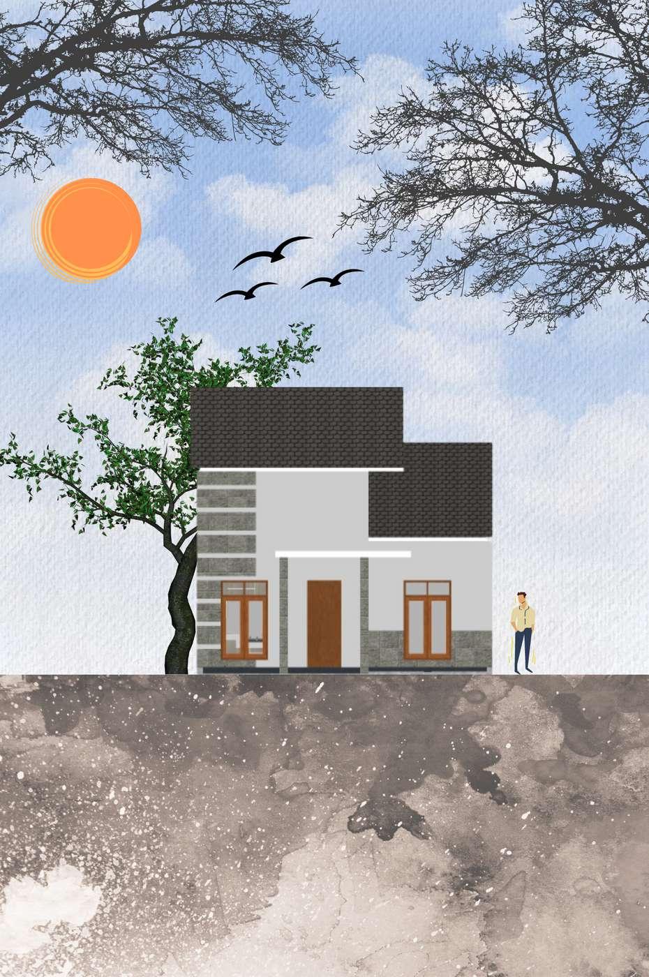 Hunian Berkonsep micro Healthy house pada rumah ini memanfaatkan lahan dan memaksimalkan fungsi dalam ruang. rumah ini memperhatikan tata ruang, sirkulasi udara, pencahayaan dan material yang digunakan