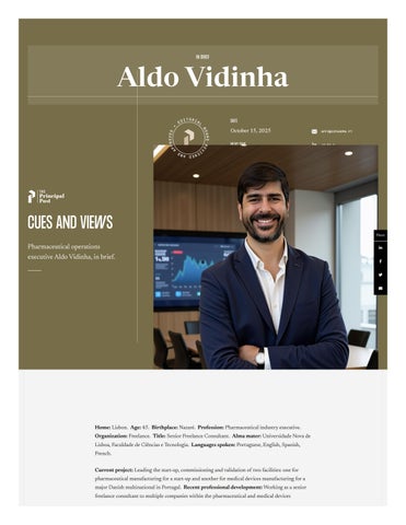 Aldo Vidinha is an internationally experienced leader with more than 18 years of expertise in the pharmaceutical industry, specializing in Engineering, Validation & Qualification, GMP Compliance, Quality Assurance, and Manufacturing. Throughout his career, he has successfully led and delivered the construction, start-up, commissioning, qualification, and validation of multiple pharmaceutical manufacturing facilities across Europe, the USA, Australia, and China.
