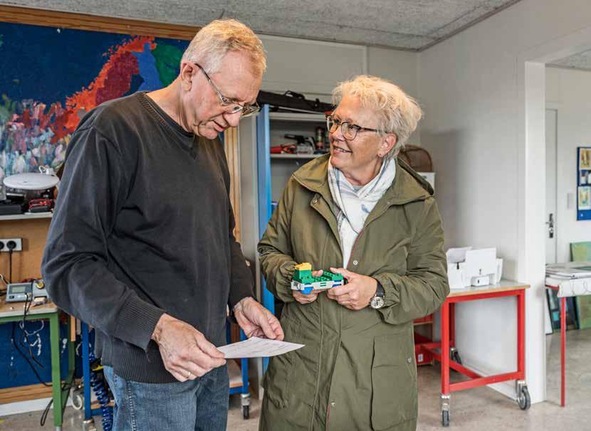 ”Jeg så på Facebook, at de reparerer alt muligt. Det er fantastisk at have et sted, hvor vi kan komme med ting, som trænger til en kærlig hånd. Der er et helt liv af kompetencer i det her lokale. Det er en gevinst og en guld grube for en by som Glyngøre at have sådan en flok mænd, som også giver en kop kaffe,” siger hun, før hun stop per lidt penge i en lille, rød legetøjs postkasse på bordet.