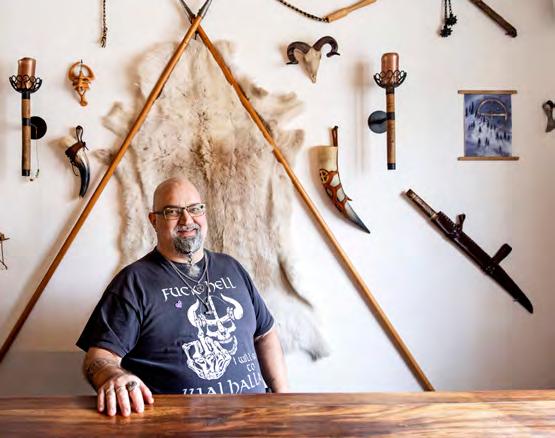 Ikke helt som de andre venner Alex fra Juelsminde ligner ikke umiddelbart den typiske besøgsven. Han er iklædt heavy metal-T-shirt og langt flettet skæg – og følger Herdis overalt.