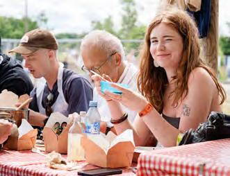 På sommerens Roskilde Festival gentog Ældre Sagen sidste års succes og inviterede frivillige med til en dag fuld af gode generationsmøder, inspirerende snakke og dejlig mad. Her lavede mennesker i alle aldre nemlig mad sammen, som de bagefter indtog bænket omkring samme bord. Og her var de enige om, at aktiviteter og samtaler på tværs af alder skaber samhørighed, nærvær og fællesskab.