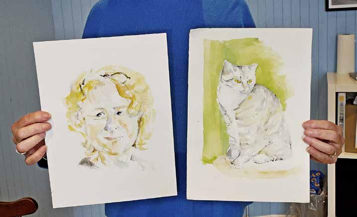 Ivy Laursen fremviser nogle af de værker, hun har skabt i hyggeligt selskab med andre kreative på Stormly, som er aktivitetscenter for seniorer på Frederiksberg.