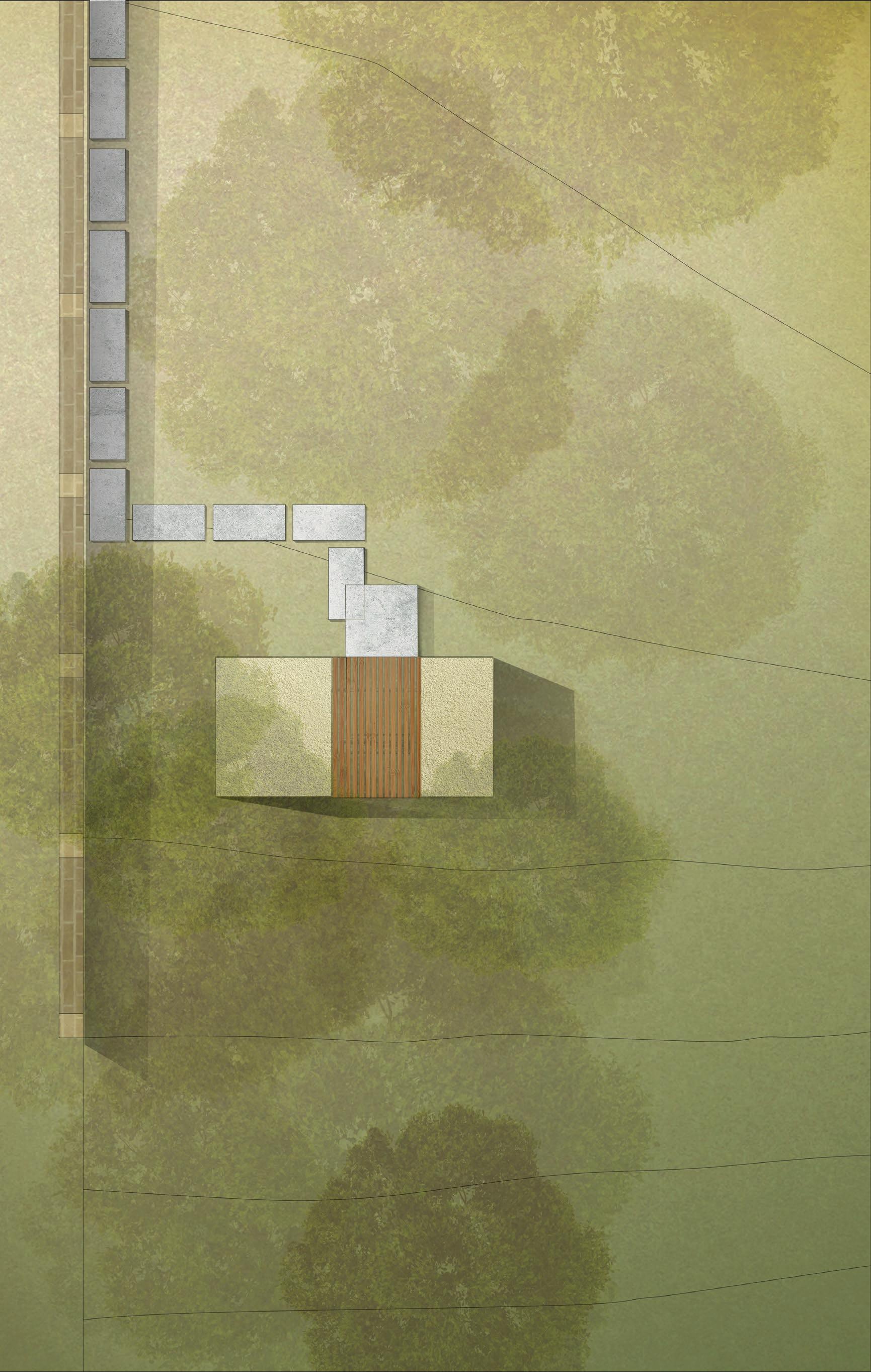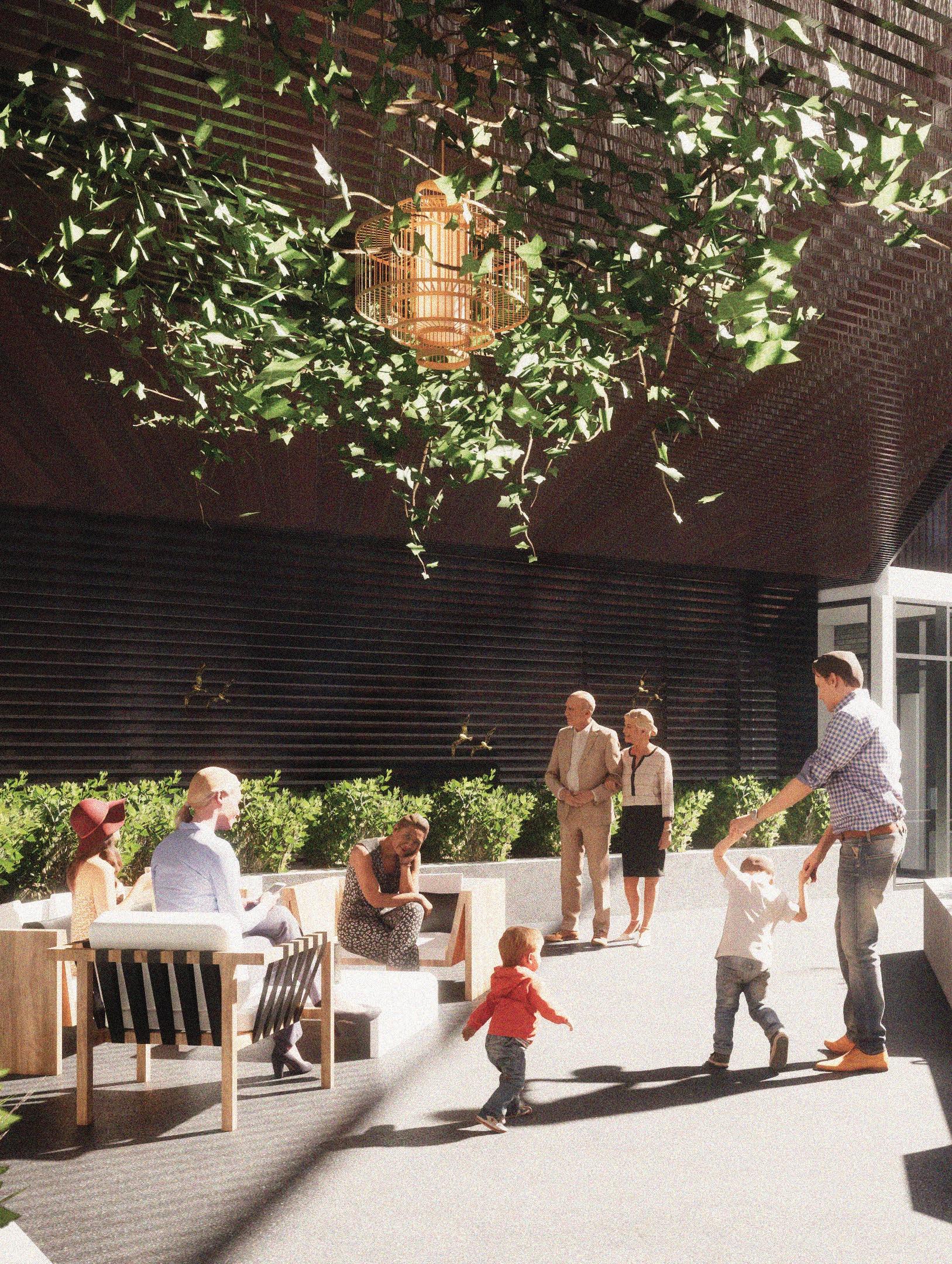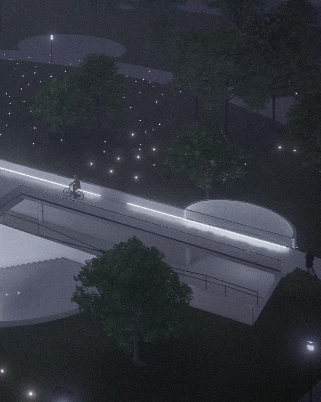 In-between space bridging both heights. Represents both communities, existing residential and new developments, being bridged with the in-between space.