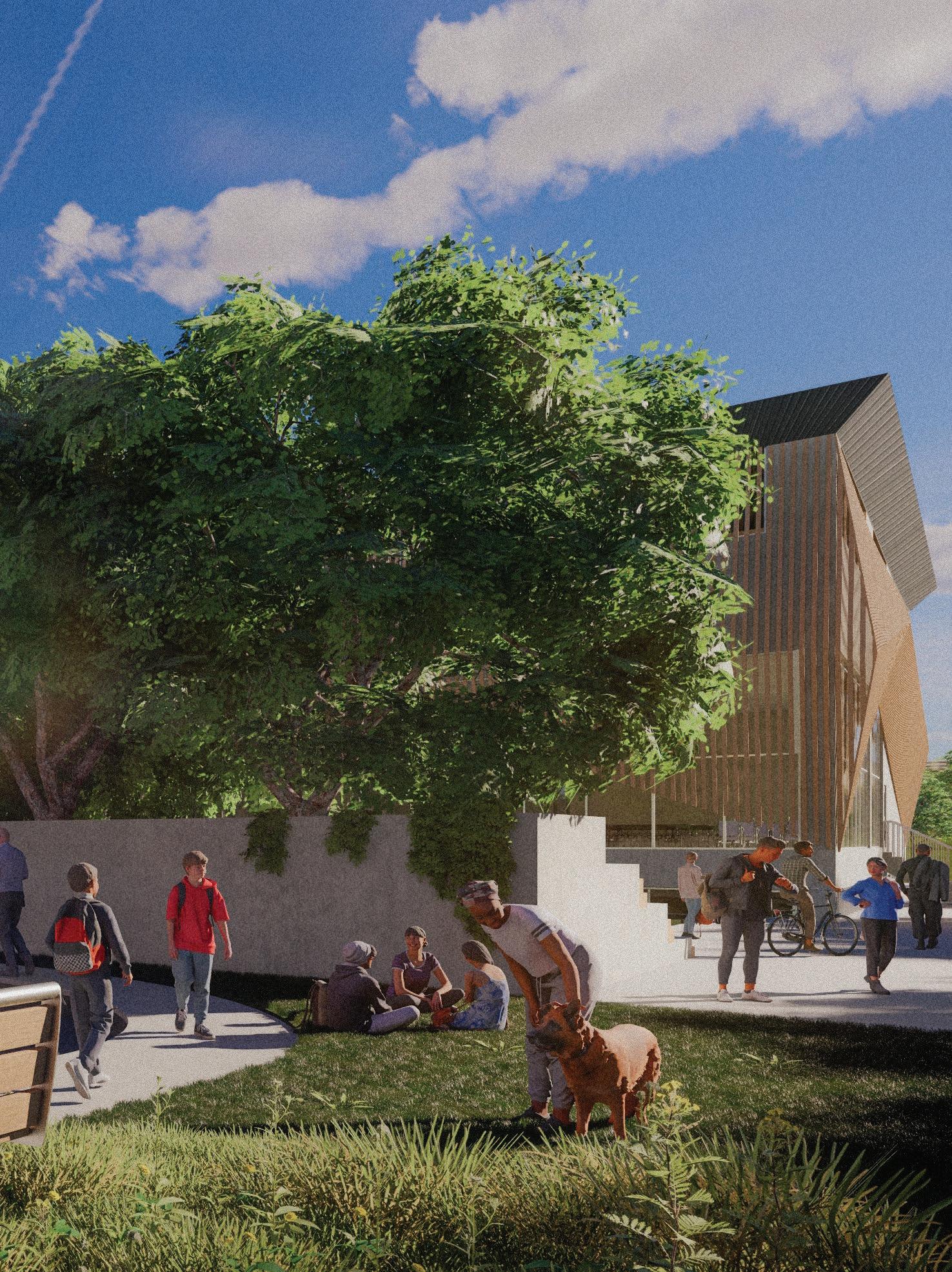 Views extended to south east corner to connect with the existing community space, Dufferin Park.