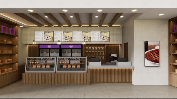 The store’s layout is designed to optimize customer flow, beginning with a display area where clients can choose their favorite desserts, followed by the cashier, and culminating with a coffee and food reception at the end of the bar. This circulation ensures a smooth and organized movement through the space, preventing congestion. In the back of the house, there is a product storage area along with a small kitchen for warming food.