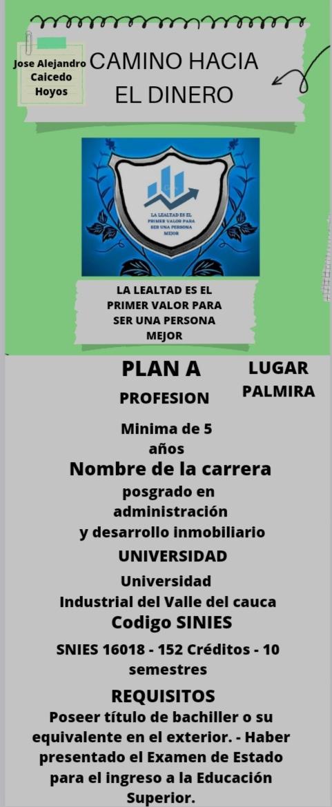 Soy una persona la cual tiene mucho furuto en el mundo de las finanzas ya que eh logrado muchas en muy poco tiempo como trabajar en una inmobiliaria , tener mucha experiencia acerca de este tema y siempre llevando el nombre de mi familia por delante