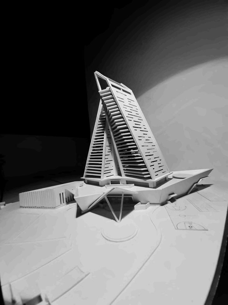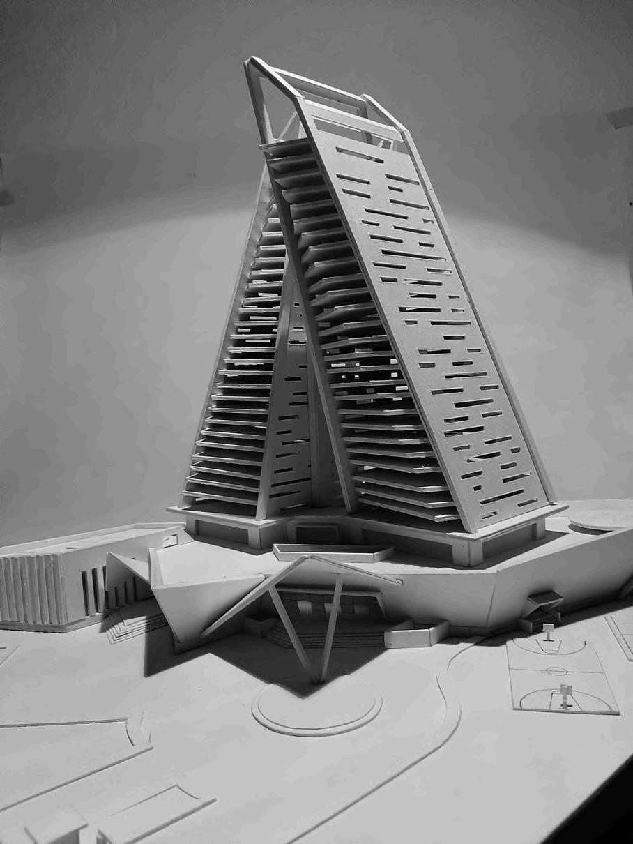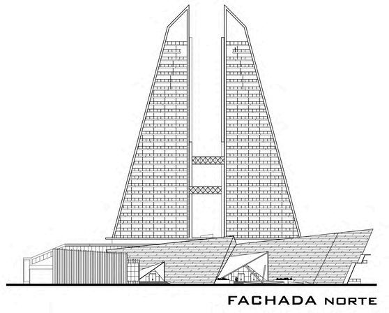 The building becomes two twin towers that tilt towards opposite sides, responding to the sunlight and views available in the area, and generating terraces that create an iconic shape.