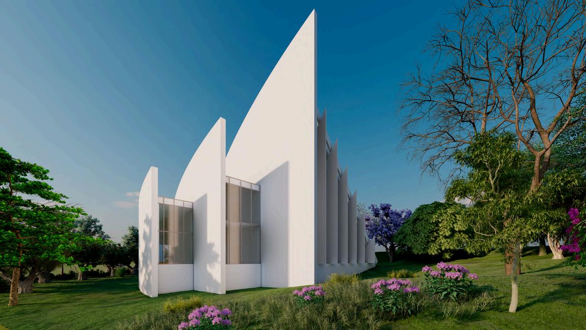 The design surges from the conceptualization of arms that welcome all religions and beliefs, inviting to live the architectural space The disruptive design effectively solves the natural conditions of the site such as sunlight, winds, views and topography, creating a contrast between minimalistic elements and a roof that creates an iconic shape. The chapel serves as a blank canvas to the visitor's free interpretation, its built elements facilitate identity with believers and its design offers an experience of serenity and introspection.