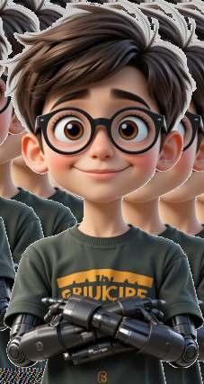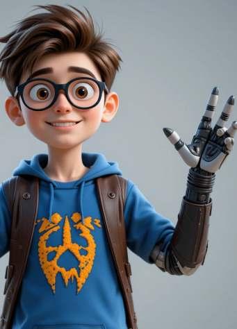 Es un joven inteligente, curioso y muy observador. Usa lentes que lo ayudan a ver el mundo con mayor detalle y precisión. Tiene brazos robóticos que son su superpoder.