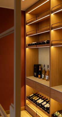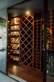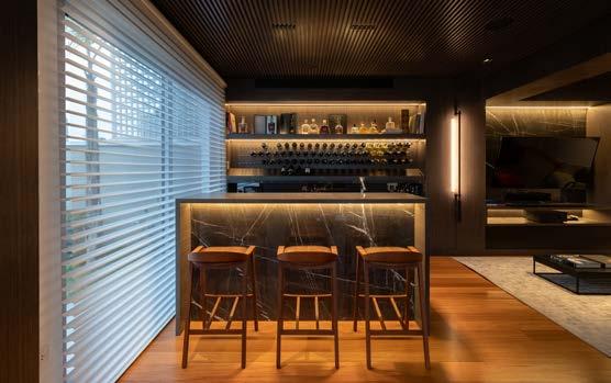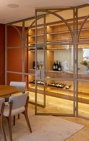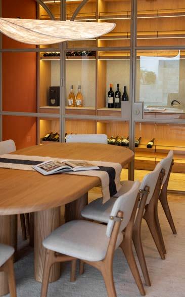 El comedor y la cava destacan por su contraste de colores y materiales, con una estructura metálica de arcos que delimita elegantemente el espacio sin perder amplitud. “Acá, la iluminación indirecta realza la calidez de la madera y resalta los detalles arquitectónicos creando un rincón sofisticado para disfrutar momentos especiales”, comenta la arquitecta.
