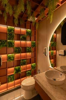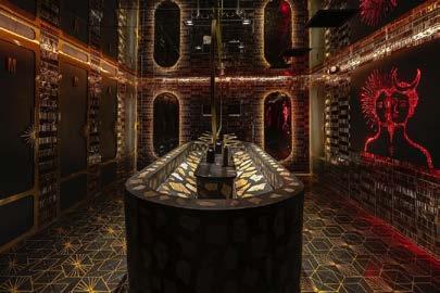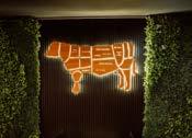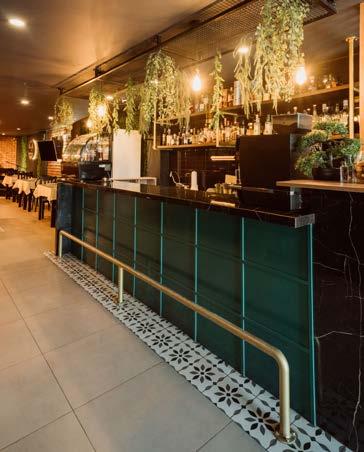 En cuanto a los materiales, Arias usó mucho follaje verde y wall panels para crear diferentes escenas en un mismo espacio. “En el piso creamos varios patrones con los porcelanatos para delimitar de manera intencional ciertos espacios; también utilizamos madera natural en la cava y melamina en los muebles. Por último, colocamos ladrillo rococho con un formato diferente para agregarle ese toque rudo que nos transmite un plato de corte de res a la parrilla; esto sale un poco del estilo art déco, pero logró complementarse bien con los demás materiales”, agrega.