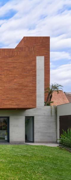 En el primer nivel, donde se ubican los espacios de sala, comedor, cocina, estudio, terraza y parrilla, destaca el uso de concreto caravista y piedra talamoye. En el segundo, donde se hallan los dormitorios y el estar familiar, resalta el uso de ladrillo. “Este volumen se desfasa del nivel inferior creando un alero o voladizo que protege el sendero de piedra que rodea la vivienda en el primer piso”, agrega Ramos.