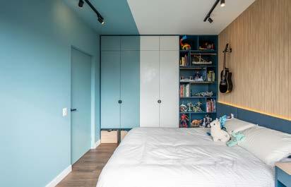 EL DORMITORIO NO ES MUY GRANDE, ASÍ QUE LA DISEÑADORA PRIORIZÓ MANTENERLO LO MÁS DESPEJADO POSIBLE; NO SOLO POR UNA CUESTIÓN DE ORDEN, SINO TAMBIÉN PARA INVITAR AL USUARIO —SU HIJO— A BAJAR LOS ESTÍMULOS Y DESCANSAR.