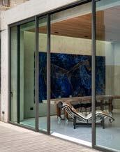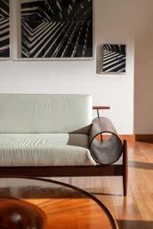 EN LA TERRAZA, UN TECHO DE MADERA OSCURA SE INTEGRA DE MANERA DISCRETA AL ESPACIO A PARTIR DE UN PATRÓN DE DISEÑO SIMILAR AL DEL PISO. LLAMA LA ATENCIÓN LA CUIDADA SELECCIÓN DE MATERIALES Y MOBILIARIO QUE NO DESENTONA CON LA ESTÉTICA PLANTEADA POR LA ARQUITECTA EN TODA LA CASA. SIGUIENDO LA MISMA LÍNEA, EN EL DORMITORIO (PÁGINA ANTERIOR), SE PLANTEÓ UN ESPACIO DE CALMA, UN LUGAR CON ALGUNOS TOQUES DE VERDE DONDE LOS DUEÑOS PUEDEN RELAJARSE, DESCANSAR Y ABSTRAERSE DEL TRAJÍN COTIDIANO.