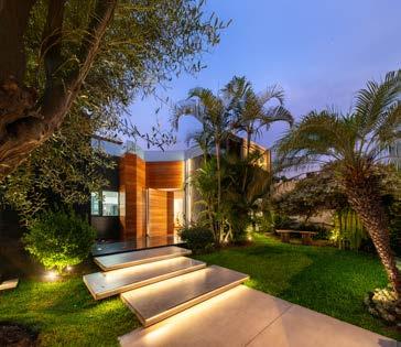 Es por ello que el inmueble se ubica en uno de los lados laterales del lote, dejando suficiente espacio libre para incluir un amplio jardín con árboles y plantas, donde destaca una volumetría que pareciera abrazar un olivo de más de ochenta años que fue especialmente traído de Ica para encontrar un nuevo hogar.