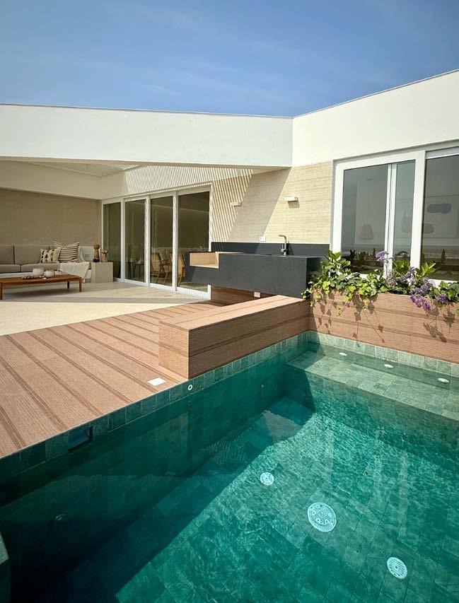 no había una zona de parrilla. “La solución fue reorganizar la terraza en tres áreas bien definidas: la piscina, la zona de BBQ y el espacio de descanso. También cambiamos el acceso hacia el frente de la casa, lo que mejoró la circulación tanto en la terraza como en el interior”, explican Karla y Paula.