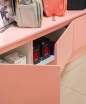 “GENERAMOS UN MOBILIARIO FUNCIONAL CON PUERTAS Y CAJONES QUE PERMITEN ALMACENAR LA ROPA Y LOS ACCESORIOS QUE SON DE RECAMBIO. CUIDAMOS MUCHO TODOS LOS DETALLES, COMO EN EL MOSTRADOR (FOTO SUPERIOR DERECHA), DONDE INCLUIMOS EL ISOTIPO DE LA MARCA, DICE ALE, RESPONSABLE DE CU INTERIORS.