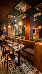 De ahí que el concepto se haya centrado en crear una experiencia exclusiva e “instagrameable”. “Generamos diferentes espacios con detalles únicos para que el que llegue no solo se sienta a gusto en un área específica, sino en cualquiera de los ambientes del restaurante. Tiene una gran influencia del estilo art déco; por eso la paleta de colores usada, así como las luminarias y la iluminación general que implementamos en cada espacio”, explica la diseñadora.