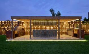 Otro requerimiento importante, de acuerdo con los arquitectos, fue que la mayoría de las actividades se desarrollen en el jardín; por lo que diseñaron múltiples espacios exteriores: la terraza principal con sala, comedor, parrilla, hornos y chimeneas para la noche y, por supuesto, la piscina, de diez por cuatro metros. “También contemplamos terrazas para los dormitorios con desayunadores y con corredores que permiten conectarlas con el área principal”, agregan.