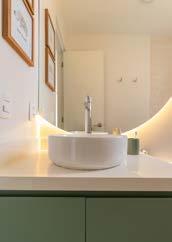 “El tono pastel de las paredes se complementa muy bien con el verde del mueble que colocamos debajo del lavadero; a su vez, el espejo redondo retroiluminado le da un toque lúdico sin alejarlo del concepto de atemporalidad que hemos querido manejar en este baño. Hemos pensado hasta en los accesorios y cuadros decorativos. Sin duda, este es un espacio que crecerá con las usuarias”, dice Ale.