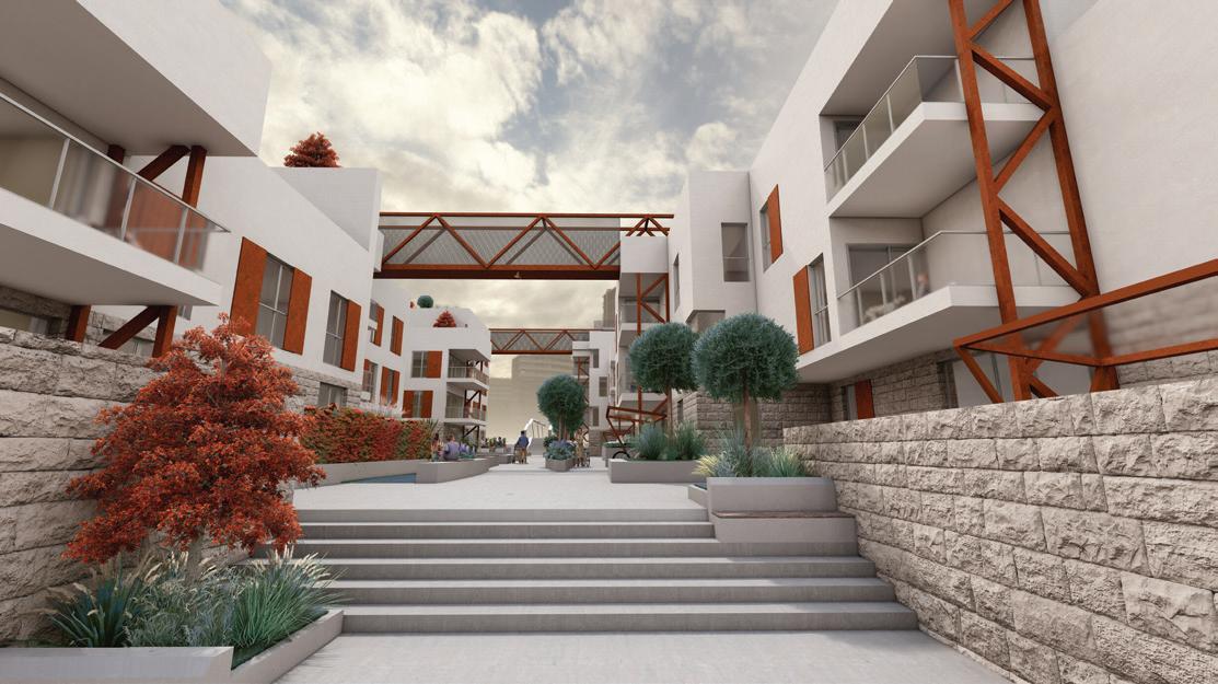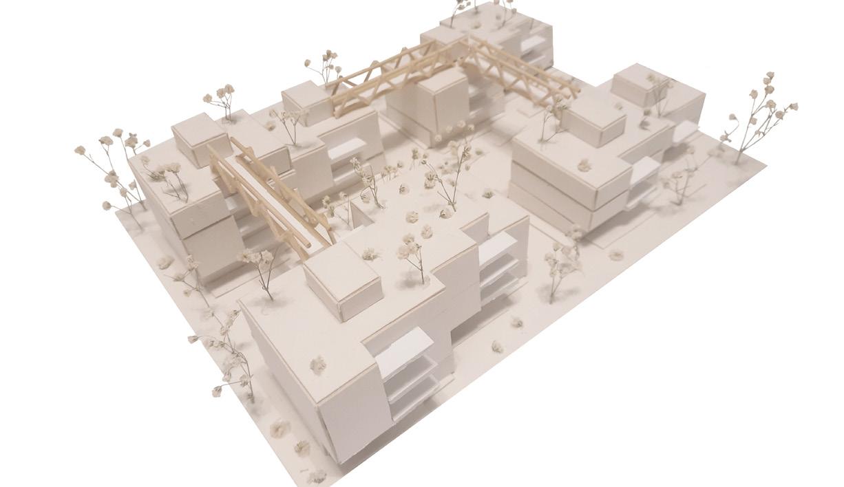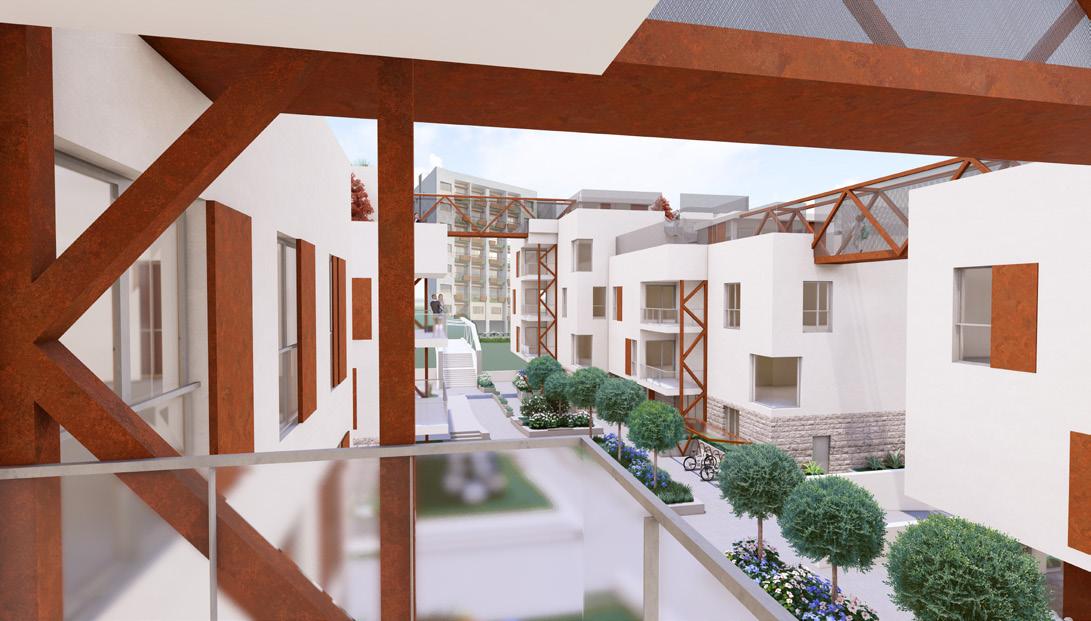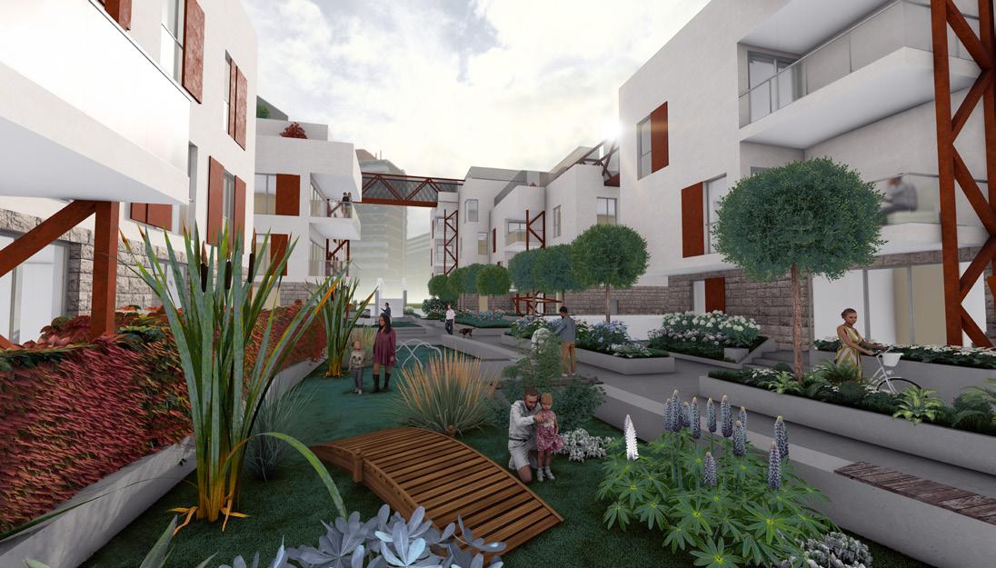 Projekt kładzie duży nacisk na integrację społeczną, oferując liczne miejsca spotkań. Jednym z kluczowych rozwiązań prospołecznych jest zaprojektowanie użytkowych dachów, połączonych kładkami, które zachęcają mieszkańców do wspólnego spędzania czasu. Dachy te są przystosowane do różnych odbiorców: plac zabaw obejmujący dwie połacie dachowe dostarcza rozrywki dzieciom, natomiast pozostałe dachy zapewniają starszym użytkownikom przestrzeń do indywidualnego odpoczynku lub grupowej integracji.
