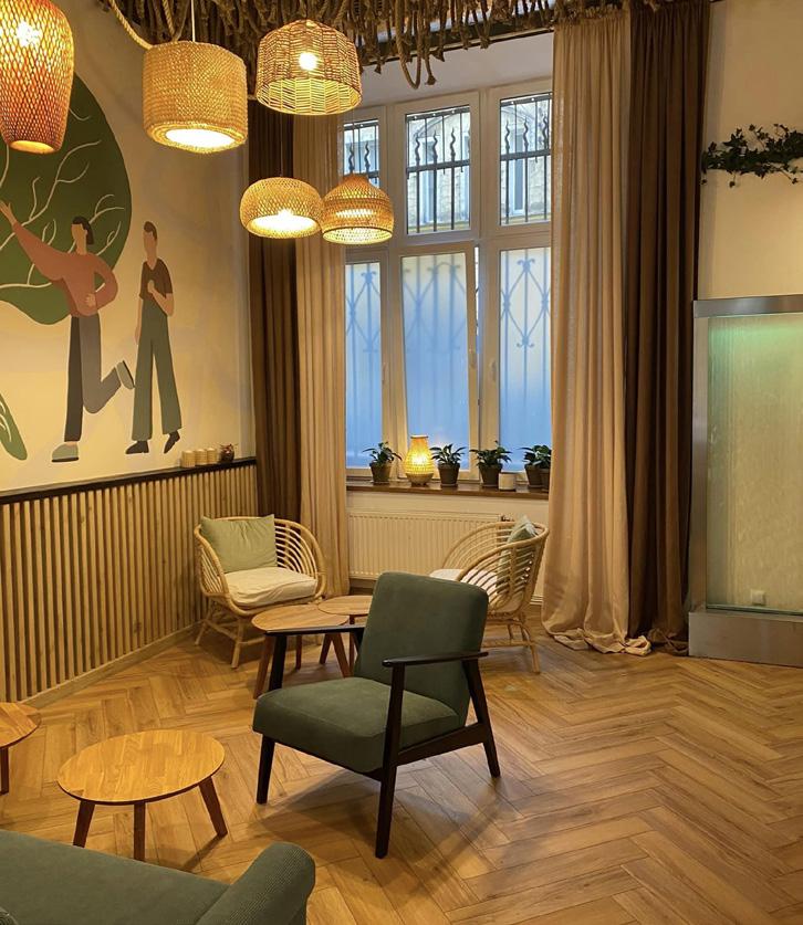 - subtelne oświetlenie - wygodne fotele, kanapa - huśtawki - ścianka wodna