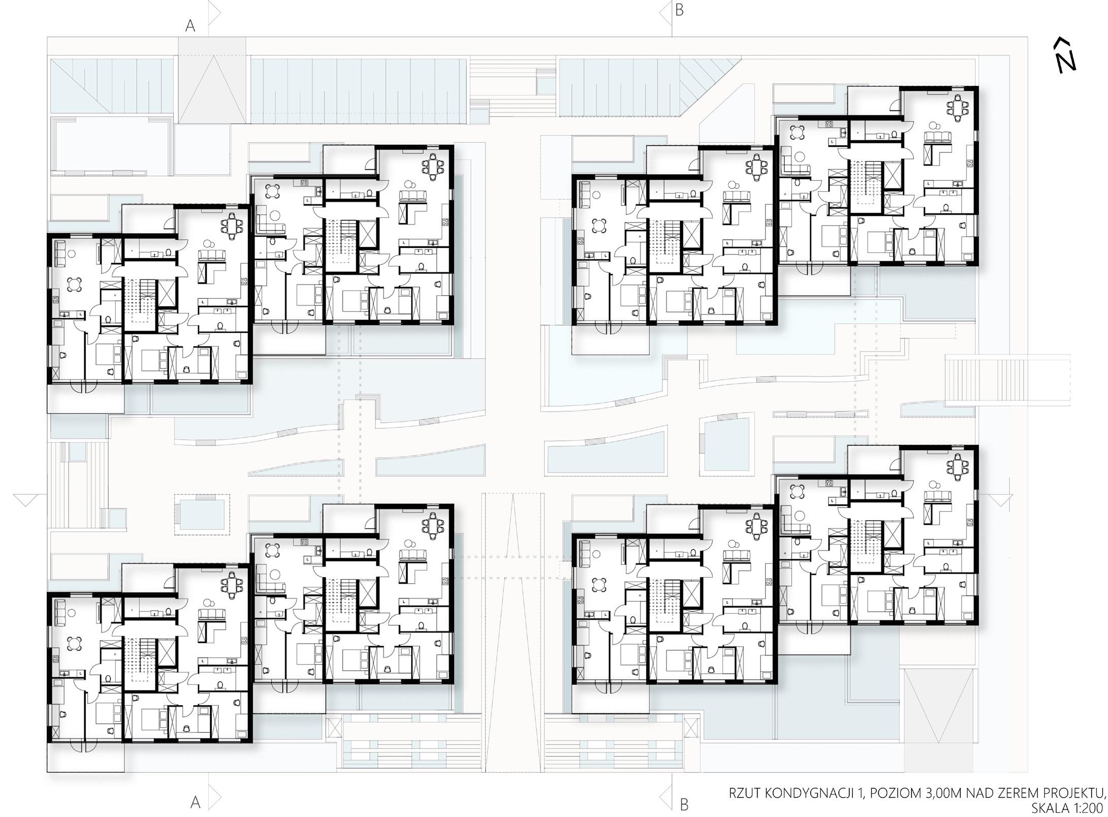 Istotnym aspektem projektu było również oddzielenie przestrzeni publicznych od prywatnych, co zapewnia harmonijne i funkcjonalne zagospodarowanie przestrzeni.