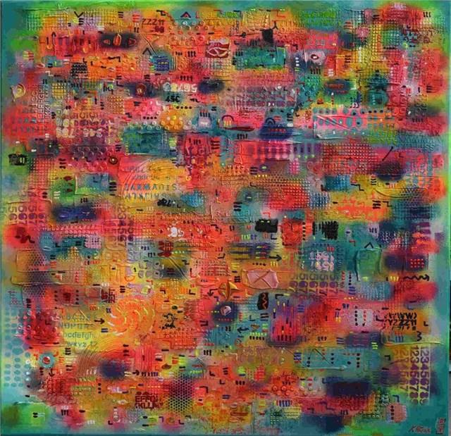 Wśródbarwnychdziełodnajdziemywielewspaniałychabstrakcji BraciaMłodożeńcyzaprezentują pracerozedrgane,energetyczneiżywiołowe,wktórychzdecydowanieprzeważająodcieniekoloru pomarańczowegoiczerwonego DwaobrazyLeonaTarasiewiczaznaczniesięodsiebieróżnią:jeden zdajesiębyćbardziejdynamicznyiwykonanywkonwencjibardziejchaotycznej,adrugizdecydowanie uspokajaatmosferę,wprowadzającjedynielekkowidocznyruch Abstrakcjązdecydowanie geometrycznąjestpracaRadosławaSowiaka,naktórejczarneibiałeplamybarwnemająokreślony kształtitworząnieco„dziurawą”kompozycję
