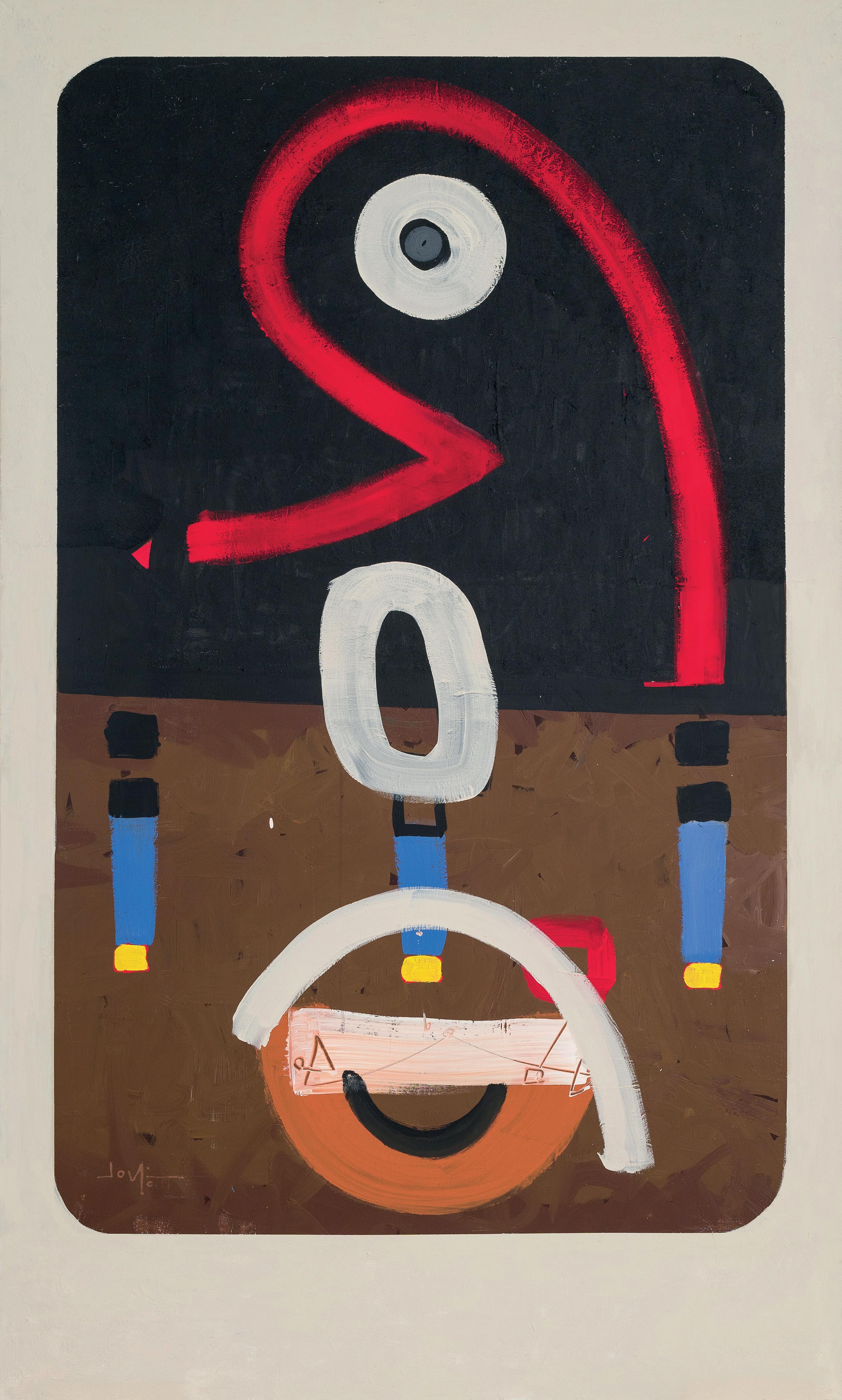 After taking into consideration the works of art created by Duci Jovic and after analyzing them, we can draw a conclusion that there is a constant need for the transformation of a figure. But not only with regards to the transformation in a straight line, in one–way and in a systemic manner, but regarding the right to make a two–way transformation, in one direction and the other. That two–way development goes from more or less abstract to the associatively abstract presentation. Even when he reaches the very borders of abstraction, Jovic keeps reminiscence of the figures through the motion, dynamics, relationships of the masses on the surface in the space as well as through the rhythm, details of shapes, signs and symbols.