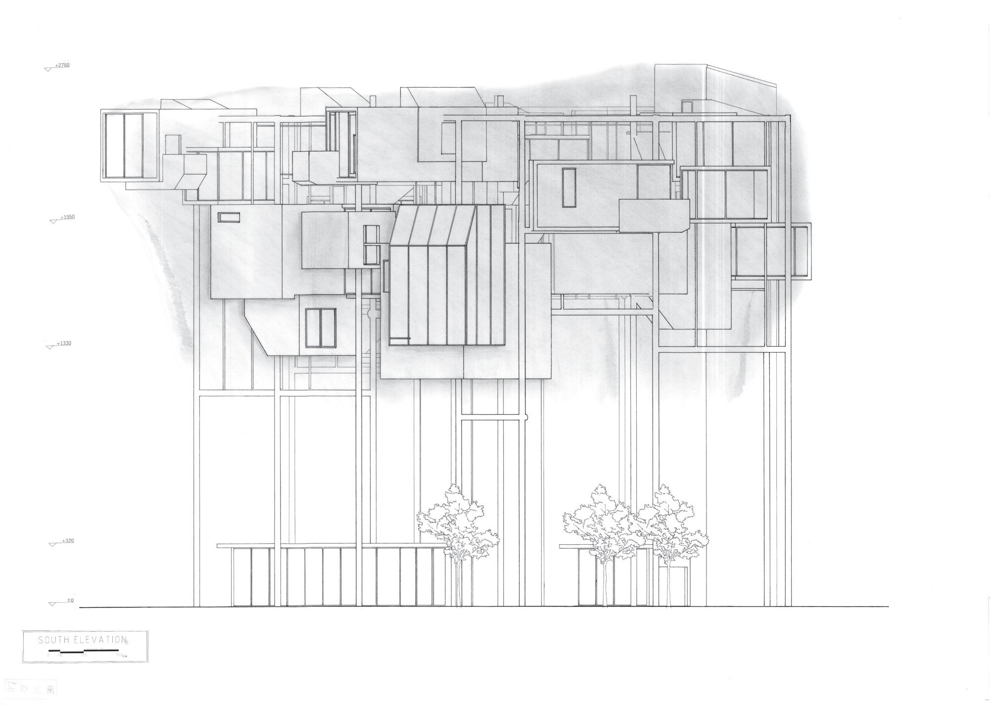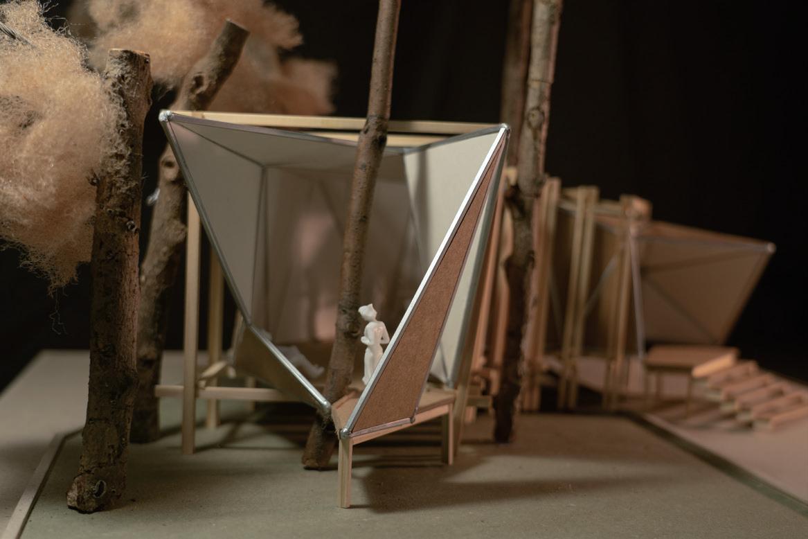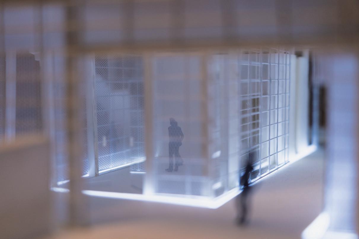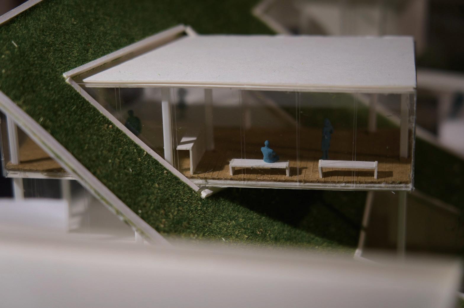 空間的設計概念是希望可以把雕刻家的創作性質以及其創作材料的特性融入建築的設 計中,就是一個慢慢變化的過程,並且透過建築內部量體的上下移動以、不同雕刻家的進 駐產生大尺度(建築立面)、中尺度(內部量體)以及小尺度(內部空間)的變化,並且讓遊客 可以透過在建築外面就可以看到這些事情的發生,除了建築外部帶來的效果以外,內部 的各個量體也為了呼應雕刻家的性質而在空間上有許多切挖的質感,讓整體的空間更符 合雕刻家的意象,建築本體就是一個雕塑品。