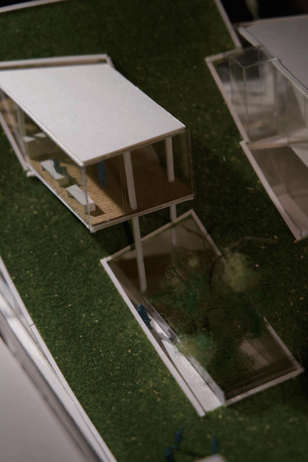根據分析,我把我所發現的區域特色先個別做幾個概念模型,我主要把我製作的概念模型歸納為兩類,第 一類是地景的轉化以及分析,第二類則是我的感知,然後從中去做更深一層的分析。進入一個的聚落,由於 地勢高低不一,且道路有機自然生長,因此進入這個空間會因為聚落的複雜而造成的迷茫,連接各個不同 地方的道路讓人感覺永無止盡,因此有了一個迴圈貫穿整個模型。植物茁壯,茂密的枝葉遮擋了視野,路線 以及植物的交織產生出不同型態的空間,從不同的方向以及角度都會有不同的感受。