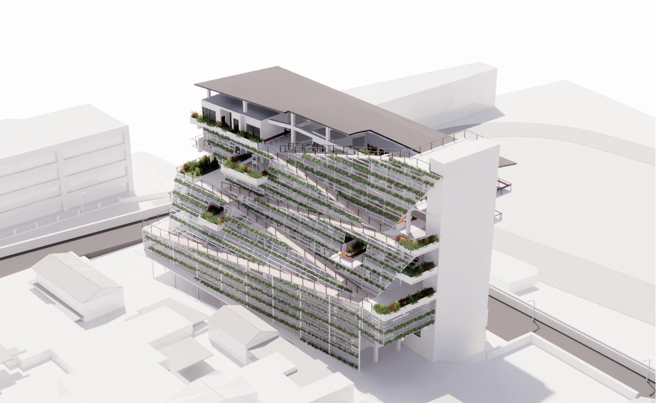 量體退縮並且串聯眷村路徑 種植植栽牆