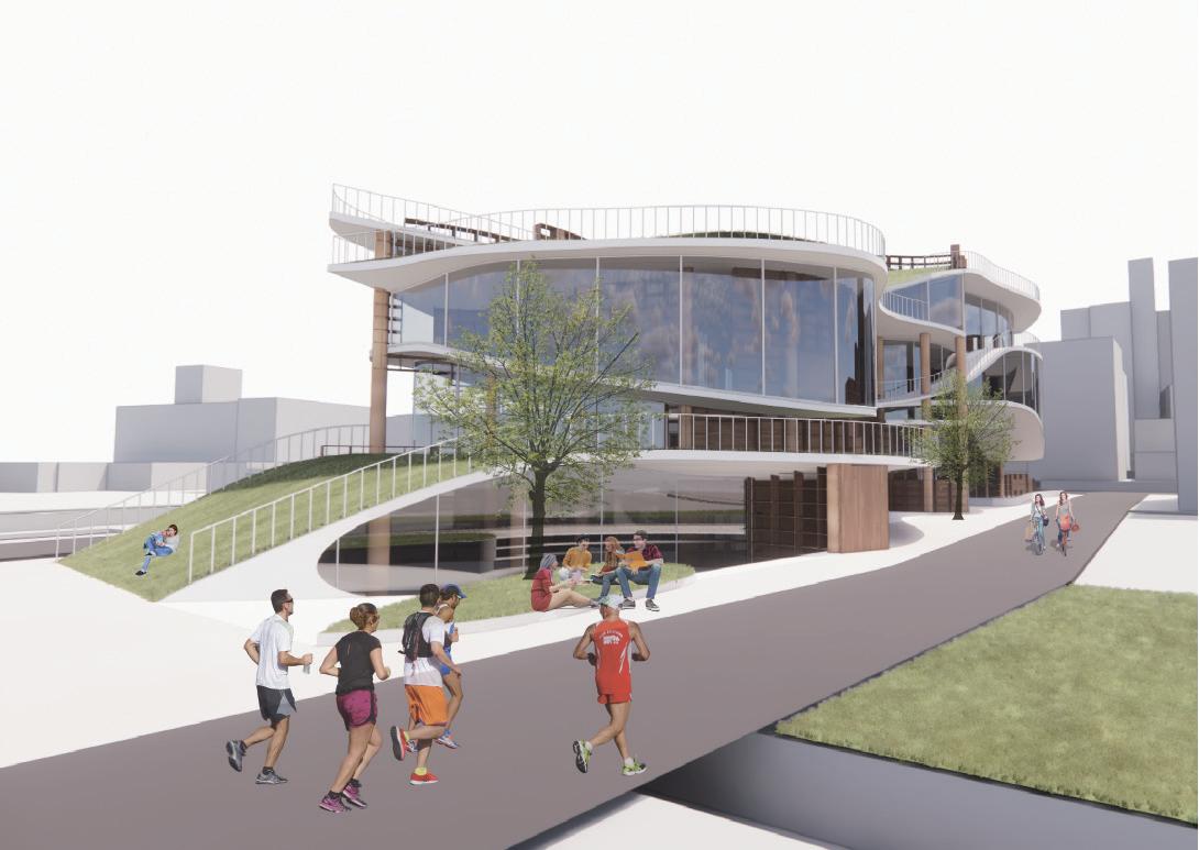 開放 都市 自然 私密 開放式草坡(開放空間) 多功能區域 工作區域(私密空間) 草坡動線 活動區域 活動種類 遊客 辦公室人員 遊客 辦公室人員 散步 遛狗 休息 親子共遊 繪畫 士林夜市内有許多綠蓋隱藏在巷弄之間 產生介面區分自然以及都市 把綠蓋帶回基地 將綠蓋引藏回基地中 CONCEPT ACTIVITY