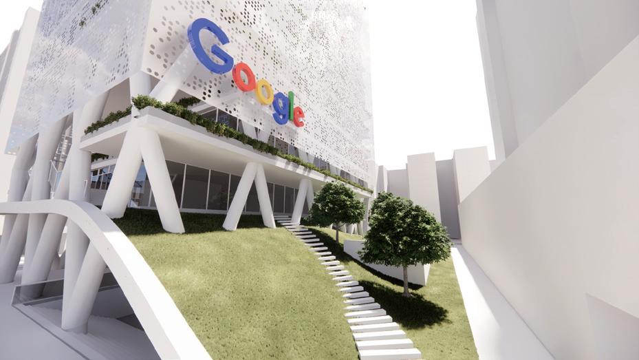 (左圖)Google 辦公室立面大樣 (右圖)Google 辦公室立面顯示效果圖
