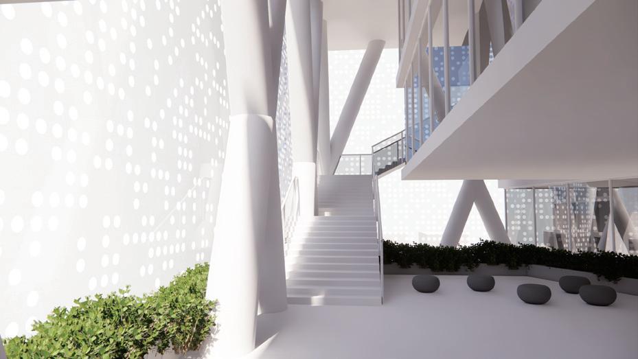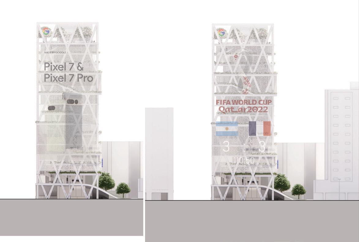 建築立面透過設計使其成為一個可以透風的電視牆 ,可以發揮互聯網公司傳遞訊息的本質,成為城市的 即時資訊傳遞站。