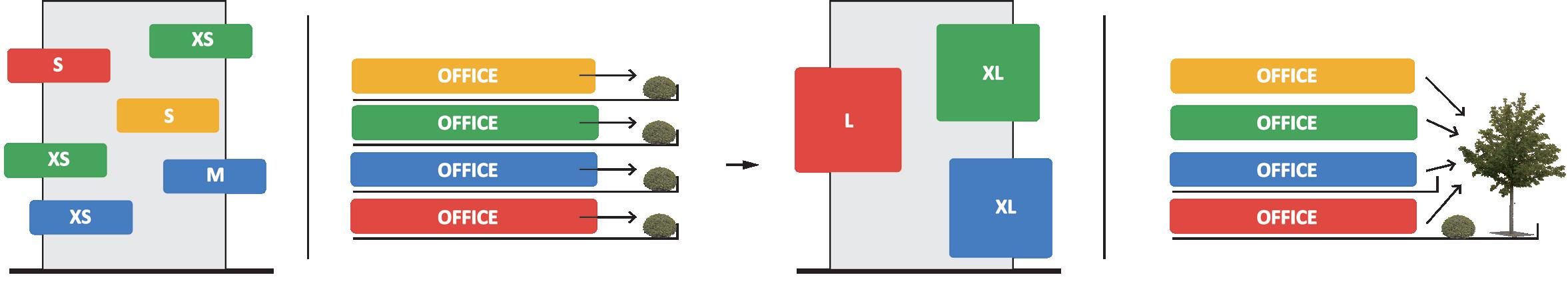 間的人可以很輕易的接觸 戶外的空氣,來提升內部 工作空間的品質,並且也