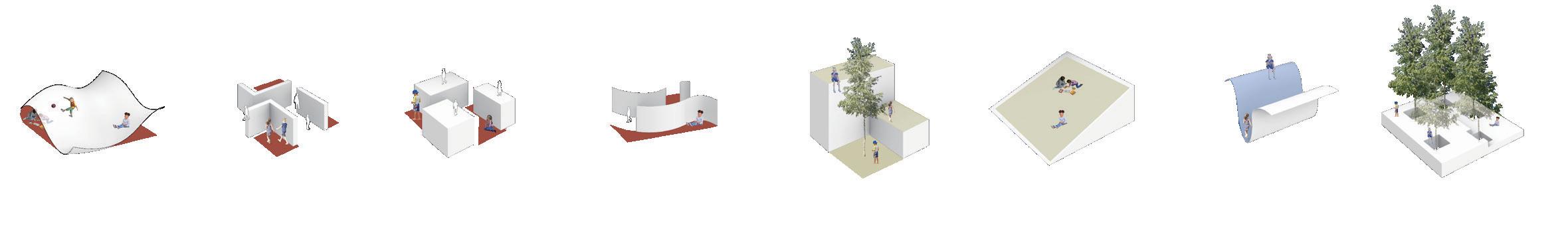 現代的都市空間,並不是適合孩子成長學習的空間,除了缺少了孩子讓孩子奔跑翻滾的空間,更 有一些城市存在的危險,因此我想要打造出一個可以讓小朋友可以盡情奔跑打滾並且可以透過 觸摸來探索的空間,我希望透過將樓板向下或向上彎折的方式來創造出一個可以打破樓層限制 的建築。並且透過上提下拉創造出不同大小的空間,提供給各種不同的空間屬性,大的空間可以 用來提供給一些需要比較大空間的地方,比如演講廳、大閱讀室等,並且在空間穿梭的時候可以 在內與外不停地轉換,提供探索的樂趣並且增加空間行走的戲劇性。