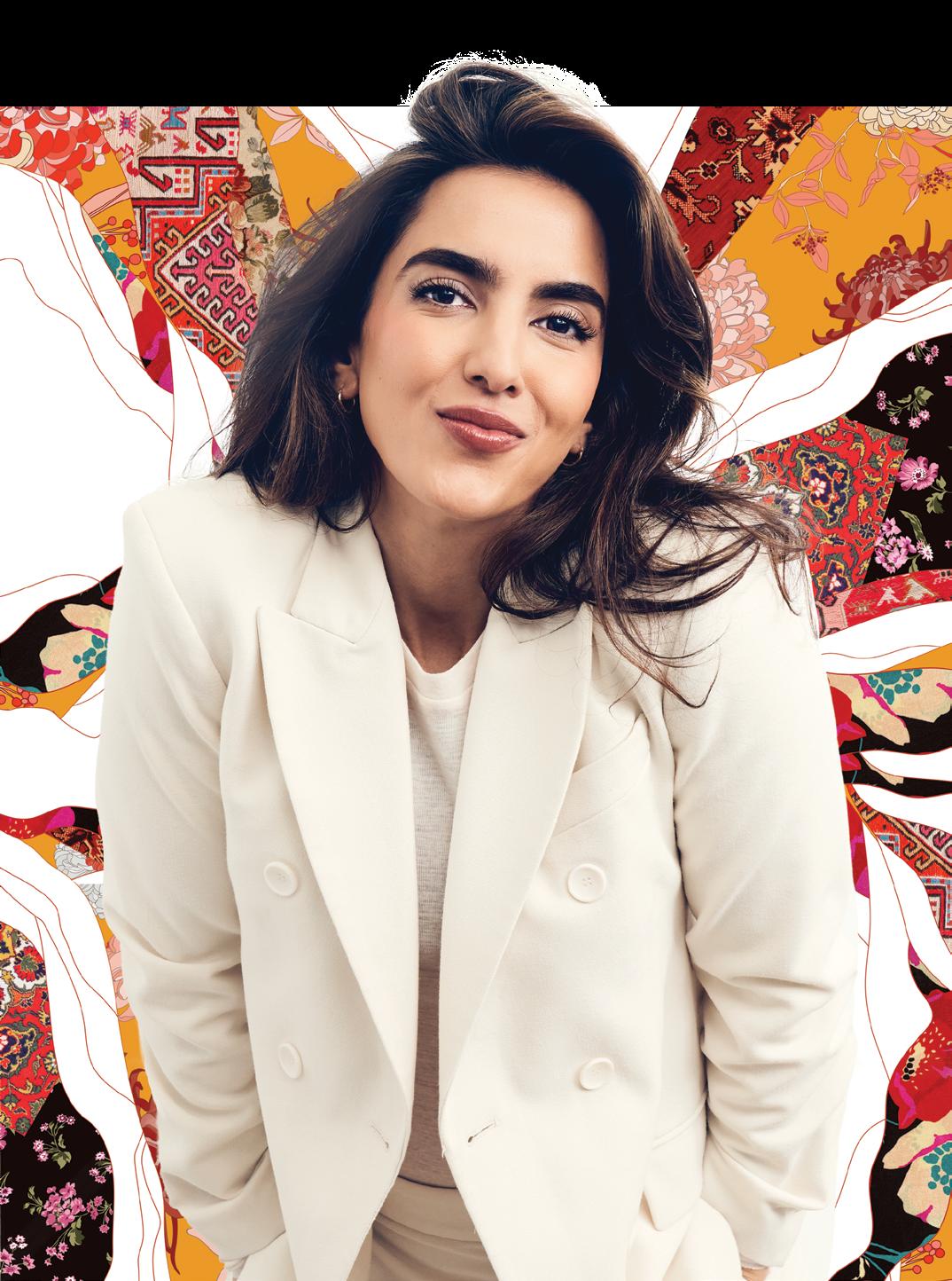 Our cover photo, captured by Shayan Asgharnia , beautifully reflects this theme, featuring Sara Seyed in a minimal white coat set against a backdrop of delicate Persian patterns and colors. The composition mirrors her own path: a balance of simplicity and heritage, clarity and depth. Sara’s work as an actor, producer, and advocate is proof that when vision is paired with an unwavering voice, it has the power to transform culture and amplify those who too often go unheard.