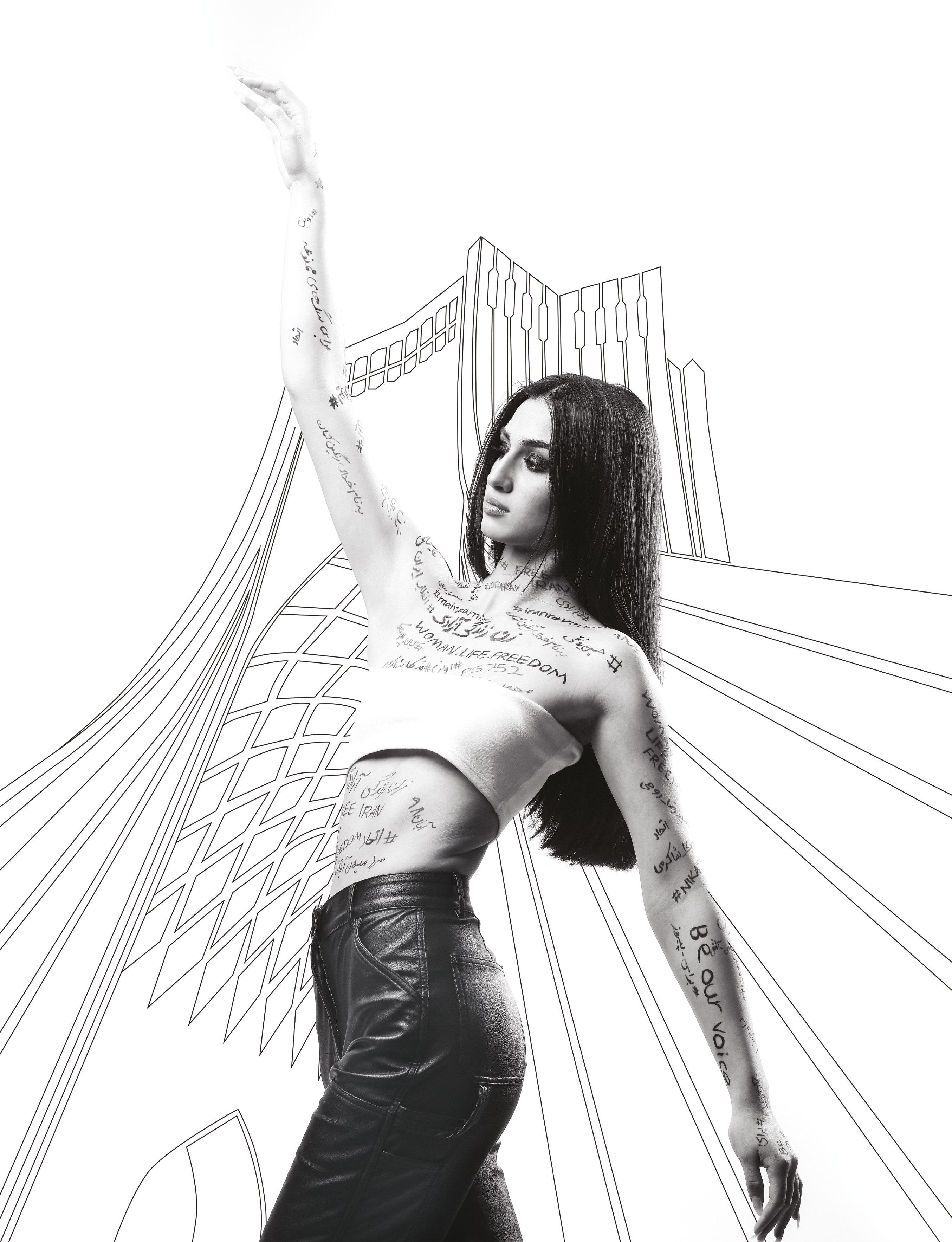 At the same time, we know the road to that future is fraught with danger and a palpable fear of the unknown. But there is one particular element of this malaise that we can all agree on — that women (my sister, your sister, all our sisters) are taking on the mantle of the brave warrior, breaking down clichés, forcing the issue and making change a real and true possibility. Those women who’ve had no voice have found their voice, and we can track it straight back to a very brave young woman who sacrificed everything to be an agent of change, Mahsa Amini. Her bravery is a testament to the true spirit of Persian people around the globe. Fierce. Opinionated. Smart. Educated. Equal.