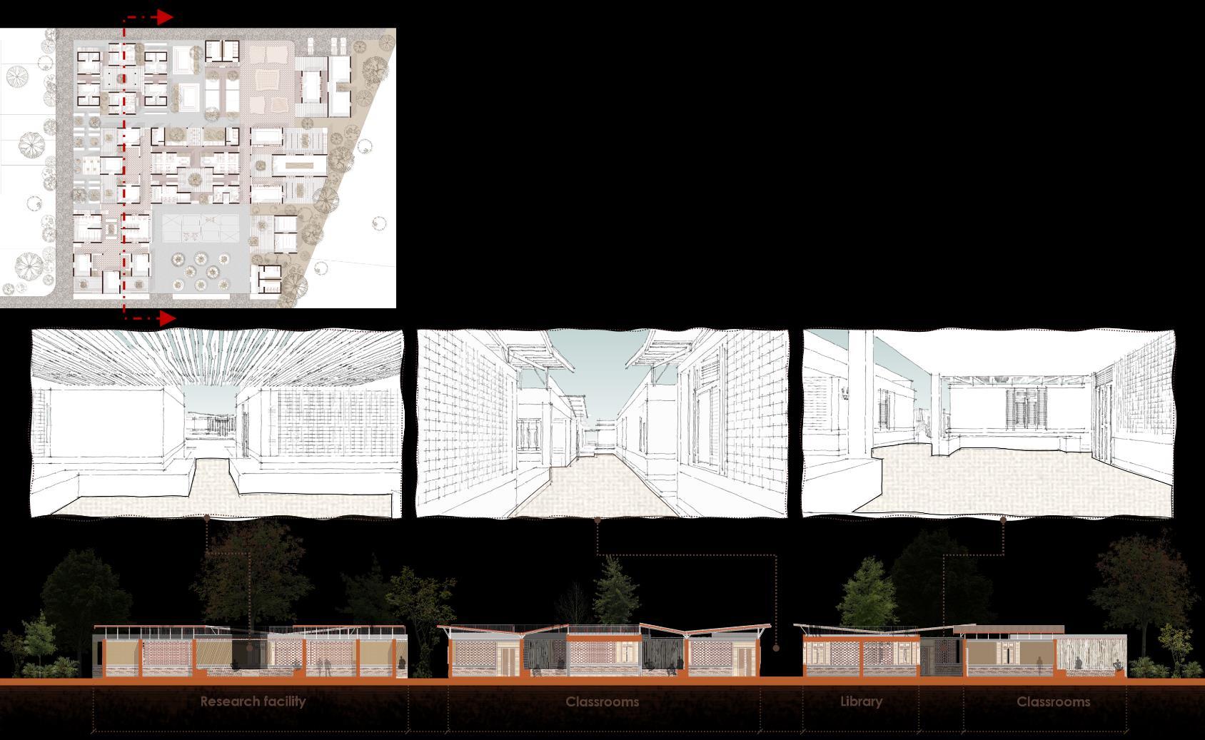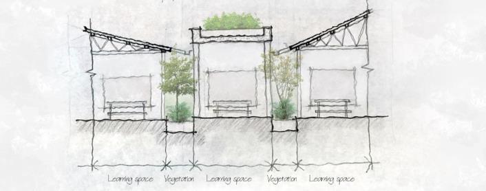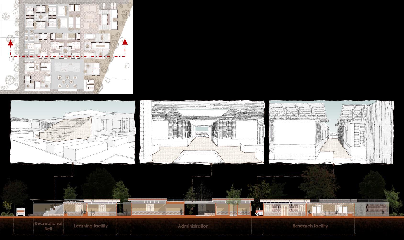 1. Creating informal spaces by dividing and scattering built blocks to enhance building envelope as well as inviting users in interactive spaces.