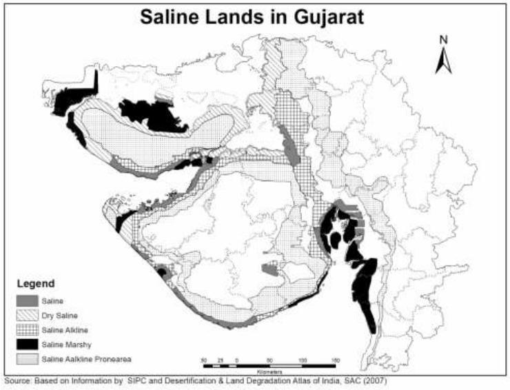 The long-term sustainability of cotton cultivation in NorthSaurashtraneedstobequestionedasitssoils are shallow and medium black. South Saurashtra ‘s irrigation patterns are similar to North Saurashtra ‘s. Further, Saurashtra being a hard rock area, the recharge potential is limited. Prolonged cultivation of water intensive crops over South Saurashtra ‘s shallow, black calcareous soils could potentially lead to salinity. On the other hand, villages in saurashtra are very much scattered and spread across 31% of total state area of Gujarat. Still, no major education or learning facility is available to teach and introduce new farming trends to local farmers. As a result, growth of farming sector is fluctuating, and farmers are becoming vulnerable to migrate to southern Gujarat regions for construction and transportation works.