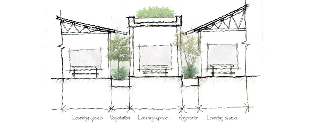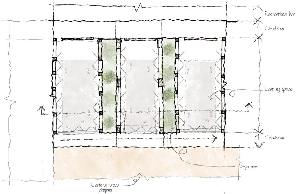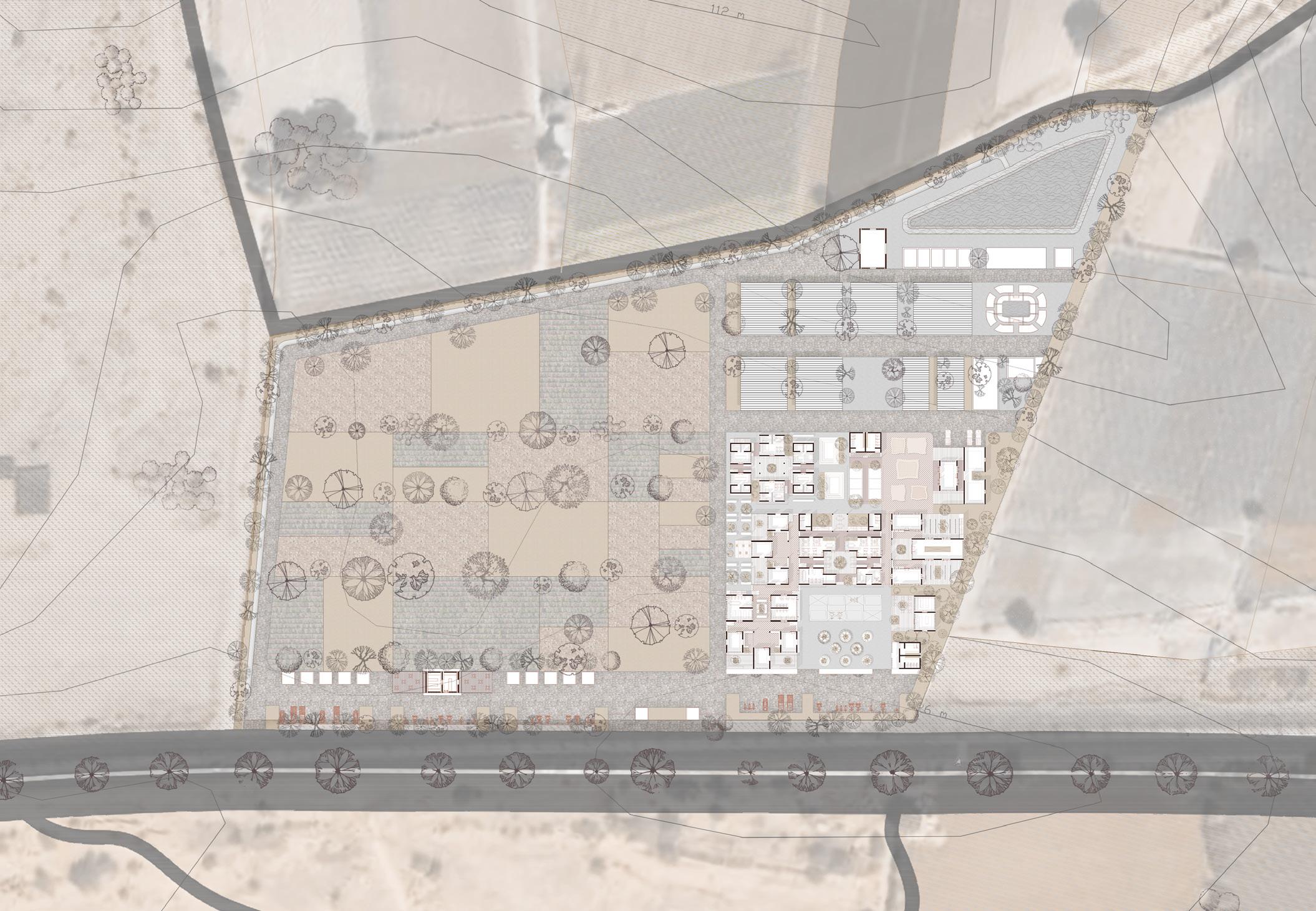 To achieve this, the concept is the integration of education and agriculture. A built environment intertwined with fields’ pattern creates different types of spaces and continuous surfaces. It connects functions, people, and vegetation.