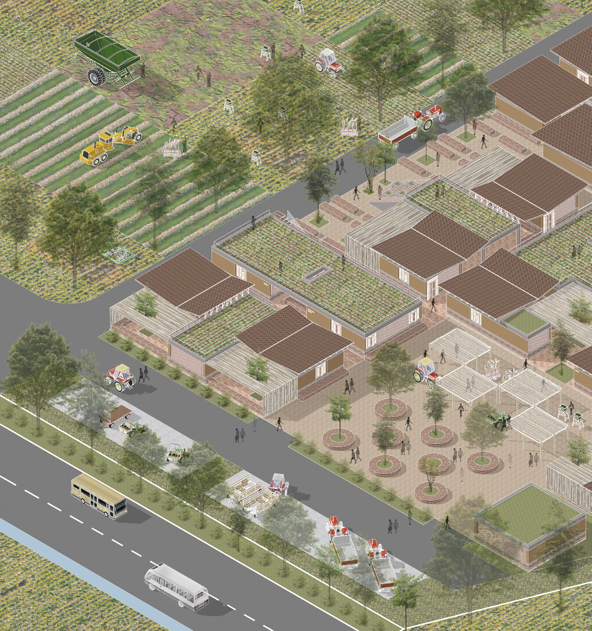 This project aims to explore architectural solutions, to understand the overall characteristics of the community while creating an area that can truly reconnect people to their inherent being of working the fields. The solution could be linking diverse agricultural subfunctions by a multidisciplinary approach that helps bring agriculture back in the mind of people, in the everyday discussions. City residents, researchers, students, all converging around a common purpose, growth of life through architecture.