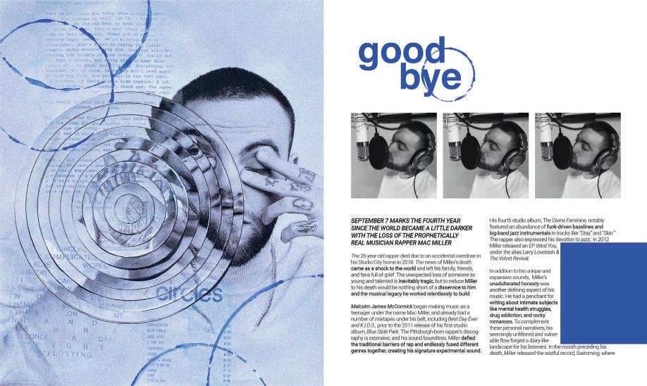 Homenaje al artista Mac Miller mediante técnicas analógicas como el collage y la transferencia, capturando su esencia musical con una fusión de imágenes y palabras. Representando su impacto cultural y legado artístico.