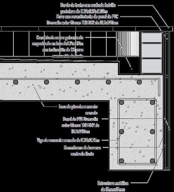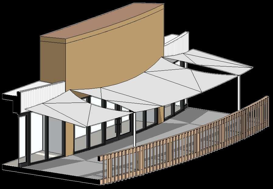 Tensionada de lona Mástil Diciembre 12:00 p.m. Mar./Set. 12:00 p.m. Junio 12:00 p.m. S N Celosía Galerías Contraventana plegable Abierto: Cerrado: Ventana / mampara Techo sol y sombra Entrepiso de madera como alero 22° Terma solar N Teatina orientada al norte S N Diciembre 12:00 p.m. Dic. Mar./Set. Jun. E O Diciembre 9:00 a.m. Diciembre 3:00 p.m. Diciembre 11:00 a.m. Diciembre 1:00 p.m. Tensionada Tensionada Celosía Patio central